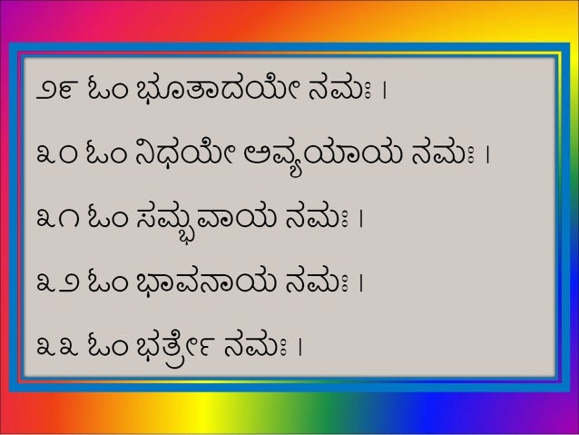 Vishnu Sahasranamam Kannada Pdf : Sri Vishnu Sahasranamam Stotras In Kannada / Discourse on vishnu sahasranama by bannanje govindacharya ವಿದ್ಯಾವಾಚಸ್ಪತಿ ಶ್ರೀ ಬನ್ನಂಜೆಗೋವಿಂದಾಚಾರ್ಯರ ವಿಷ್ಣು ಸಹಸ್ರನಾಮ ಪ್ರವಚನದಿಂದ ಆಯ್ದ ಅರ್ಥಸಾರ.. विश्वं विष्णुर्वषट्कारो भूतभव्यभवत्प्रभुः । भूतकृद्भूतभृद्भावो भूतात्मा भूतभावनः ॥ So please help us by uploading 1 new document or like us to download Vishnu sahasranama meaning in kannada ವಿಷ್ಣು ಸಹಸ್ರನಾಮ ಕನ್ನಡ ಅರ್ಥ ಸಾರಾಂಶ. Vishnu sahasranama video with kannada lyrics. Sree vishnu sahasra nama stotram pdf in english download.