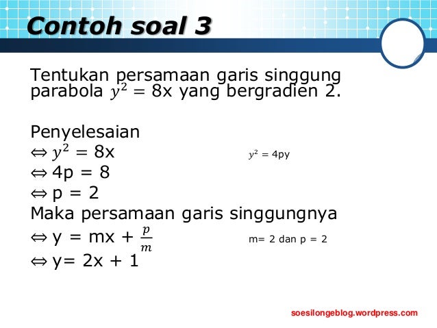 Contoh Soal Persamaan Garis Singgung Parabola Dengan Gradien M Barisan Contoh