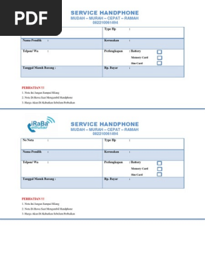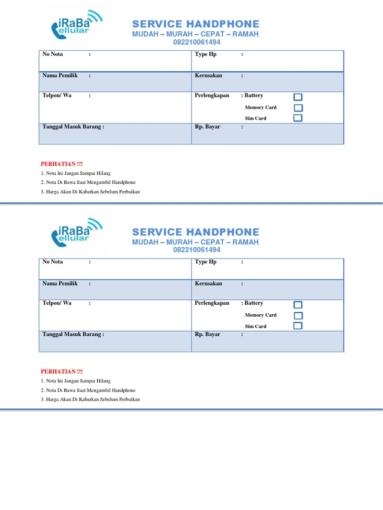 Contoh Nota Service Handphone Terkini