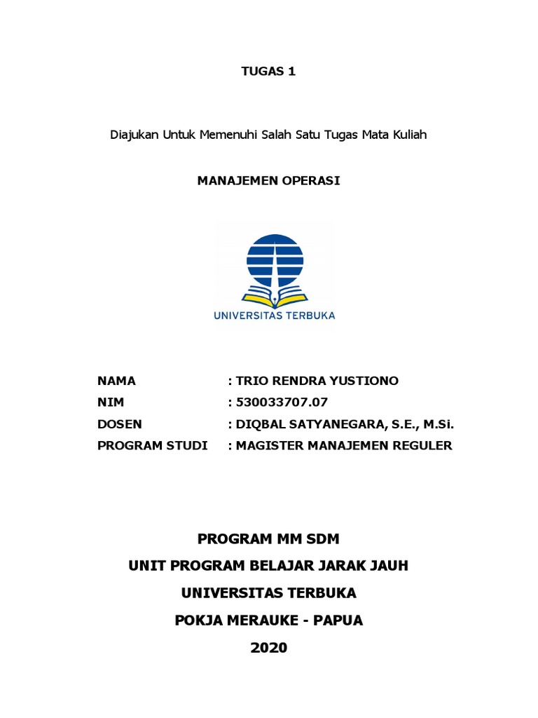 Mata Kuliah Manajemen Operasi Jasa Docx Buku Jawaban Tugas Mata Kuliah Tugas 1 Nama Mahasiswa Yanila Zalukhu Nomor Induk Mahasiswa Nim 030741868 Course Hero